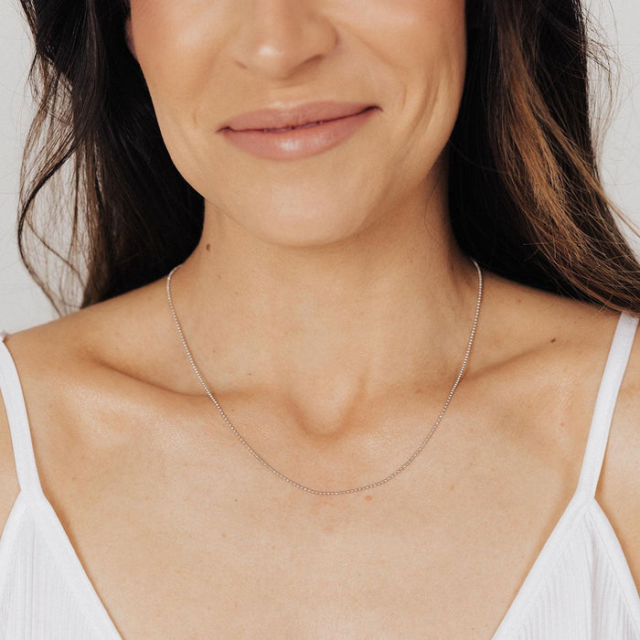 The gorgeous Ferrara diamond-cut bead chain necklace is a beautiful backdrop to showcase your favorite delicate pendants and charms