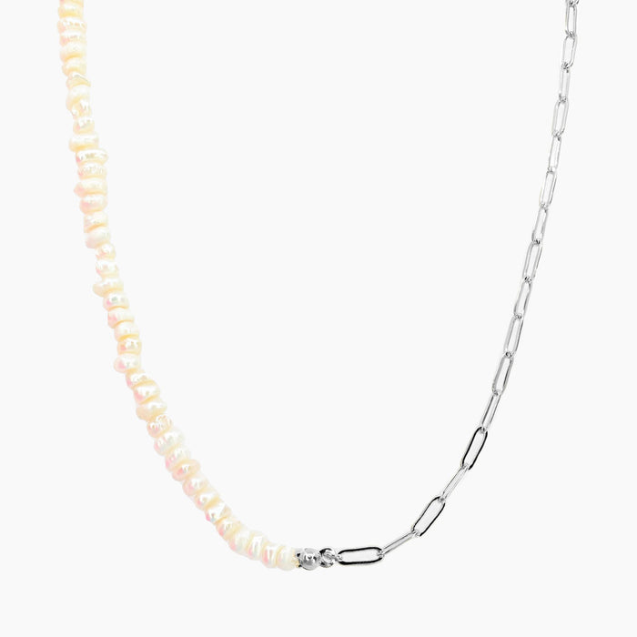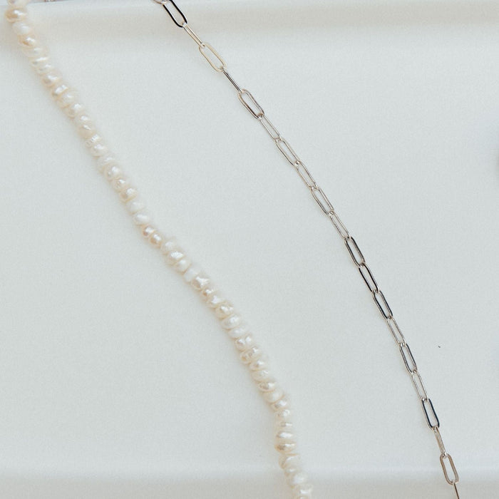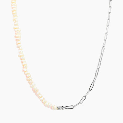 Unleash your inner goddess with the Paige Necklace! Featuring a unique design with half freshwater pearl and half paperclip chain, this necklace embodies the perfect combination of elegance and contemporary edge. Effortlessly elevate any outfit with this versatile and eye-catching accessory.