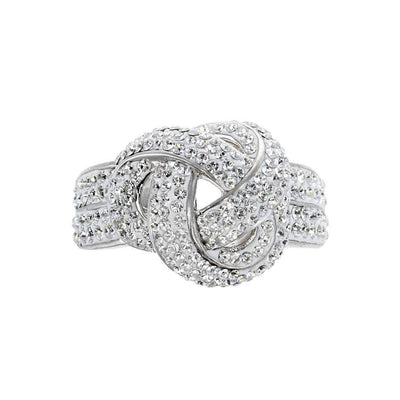 You've never seen a more beautiful knotted ring! Brilliant Swarovski Crystals reflect light in a million directions with this stunning statement ring.