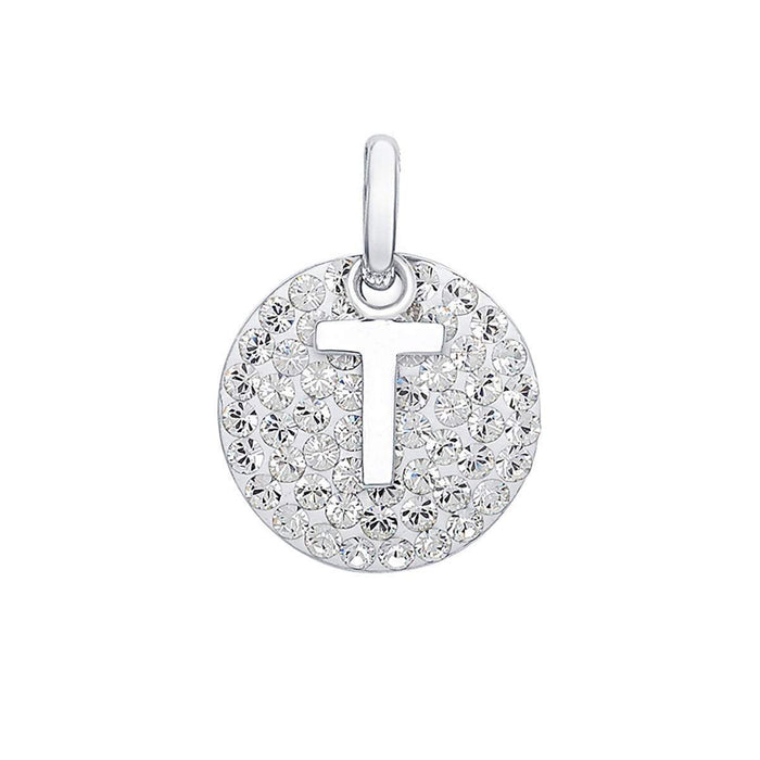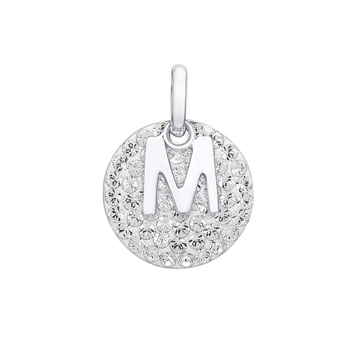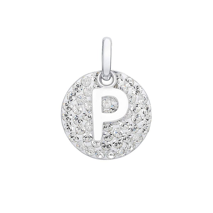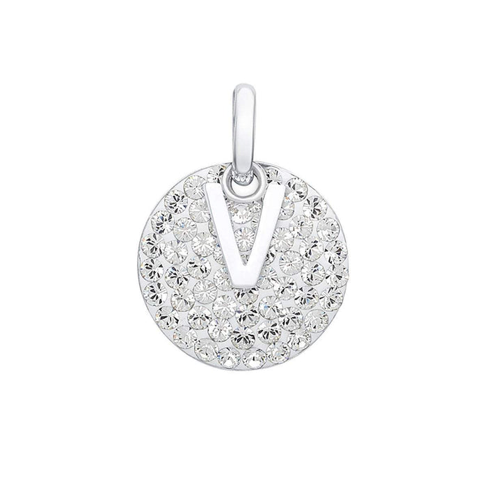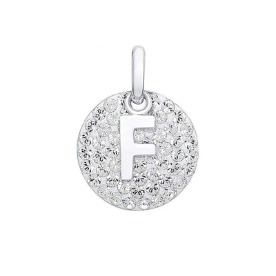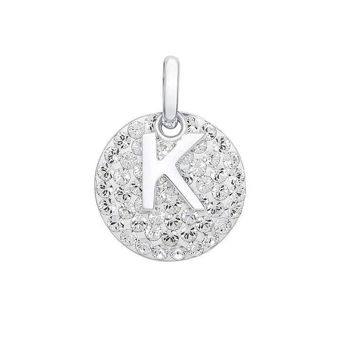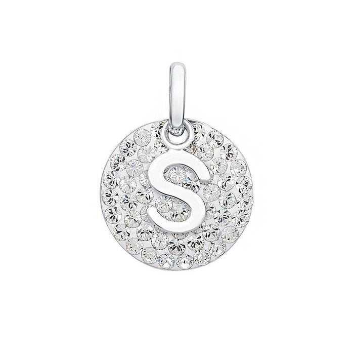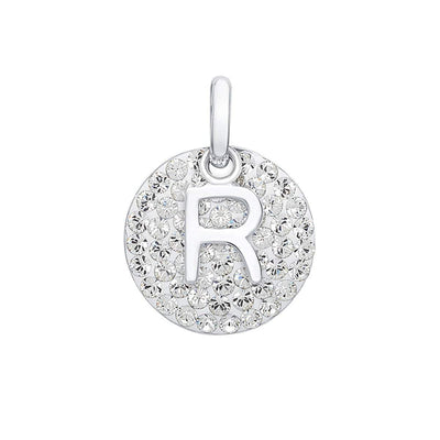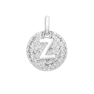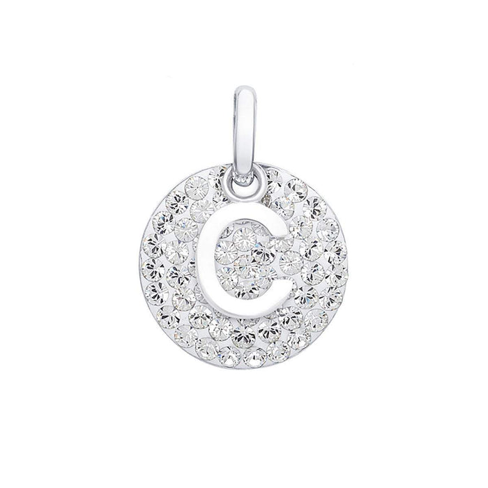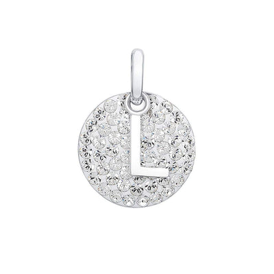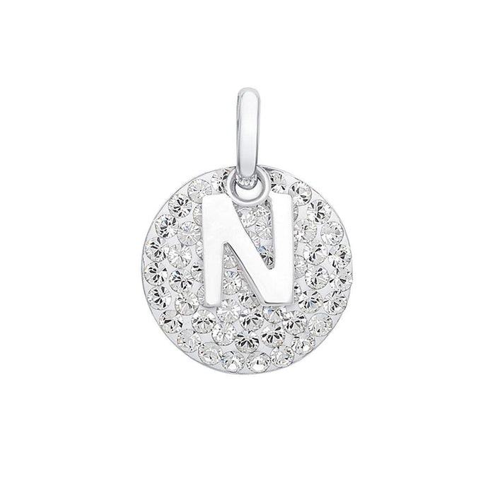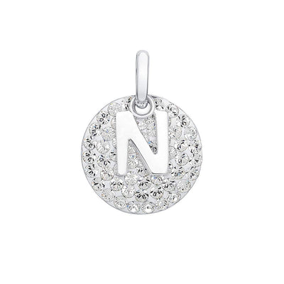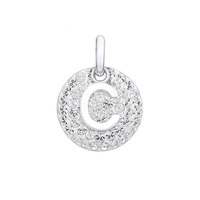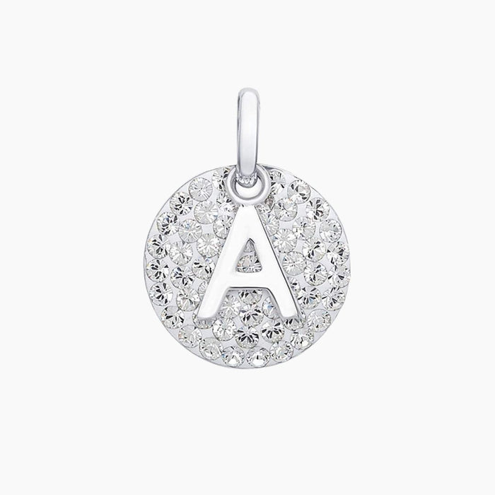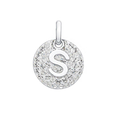 Get personal with your jewelry gifting with this stylish initial pendant. Featuring a medallion of clear Swarovski crystal and your sterling silver initial with Rhodium plating, making this the ultimate personalized touch.