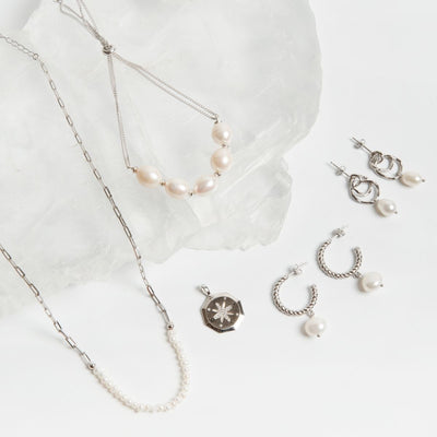 A precious metal alloy made of 92.5% pure silver and 7.5% other metals. This is a standard base material in high-end jewelry. We plate our silver-tone items in rhodium (a rare, precious metal) for extra lustre, durability, and anti-tarnish properties.