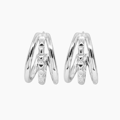 Elevate your style with our Abigail Earrings in stunning silver. These triple hoop earrings are designed with a rhodium finish for a chic and sleek look. Make a statement and radiate confidence with these elegant earrings.