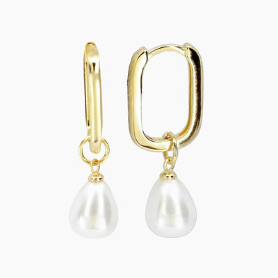Elevate your style with our stunning Maggie Earrings! Made with luxurious pearls and a delicate 18k gold overlay, these box hoop earrings add a touch of sophistication to any outfit. Stand out in the crowd and add a touch of elegance to your look with these timeless earrings.