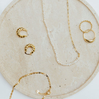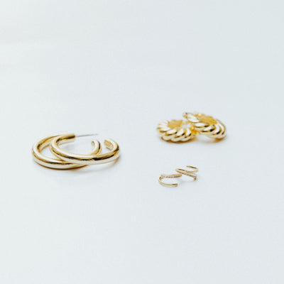 Unleash your inner goddess with our McKay Earrings in 18k gold overlay. The Croissant Style design will make a bold statement and elevate any outfit. With an inner diameter of 3/4in, these earrings are the perfect size for everyday wear.