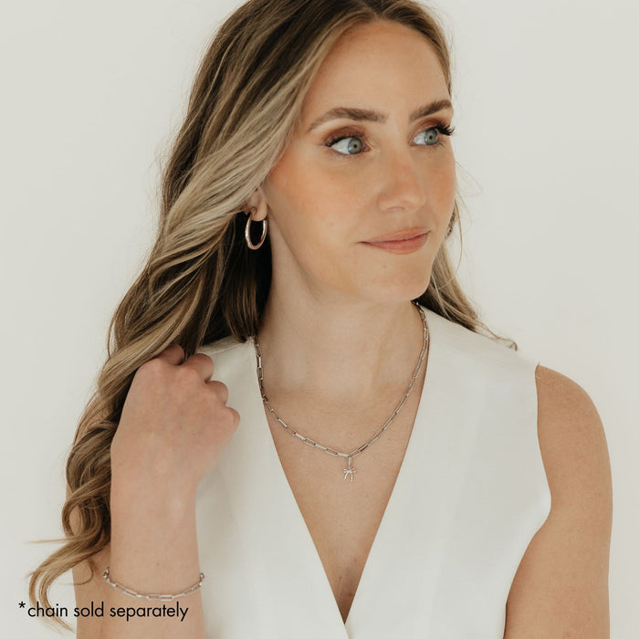 This stunning Bow Charm with a rhodium finish is the perfect addition to any jewelry collection. Add this dainty piece to your charm collection today!