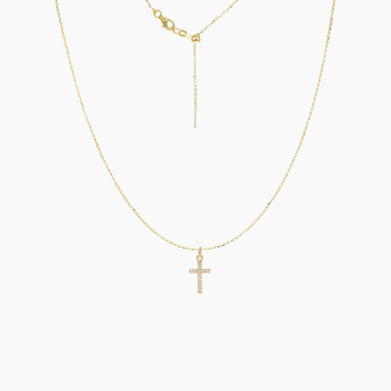 Dainty CZ Cross Adjustable Charm Threader Necklace (Gold)