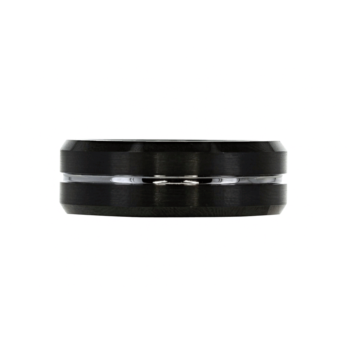 Grooved Black Tungsten Ring with Beveled Edge