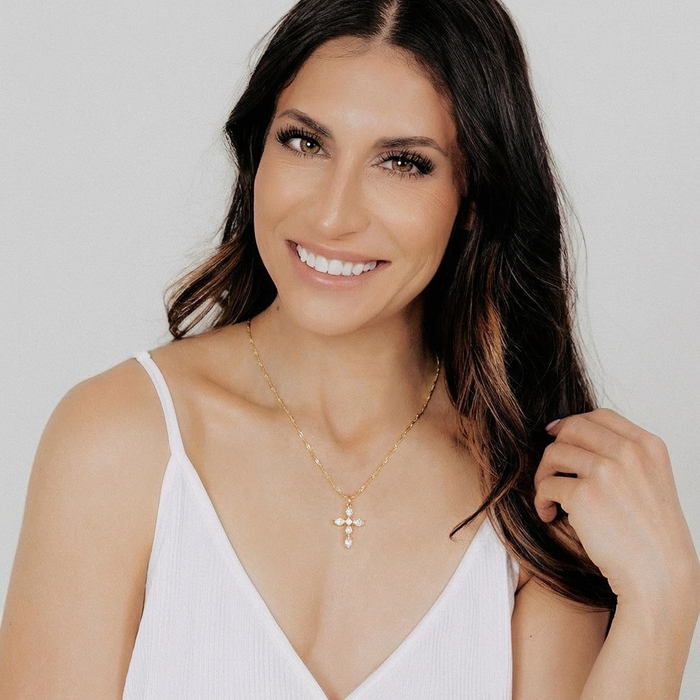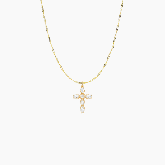 Some things you carry close because they carry you. This pendant is for the woman whose faith isn't just something she believes — it's something she lives. Six pear-cut stones catch the light from every angle, a quiet reminder that even in the hardest seasons, there's always something shining through. Wear it for the strength you've found, the grace you've been given, and the hope you hold onto — even when no one's watching.