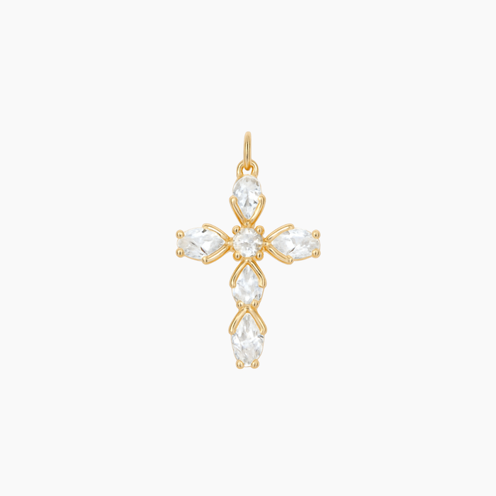 Pear-Cut CZ Cross Pendant (Gold)