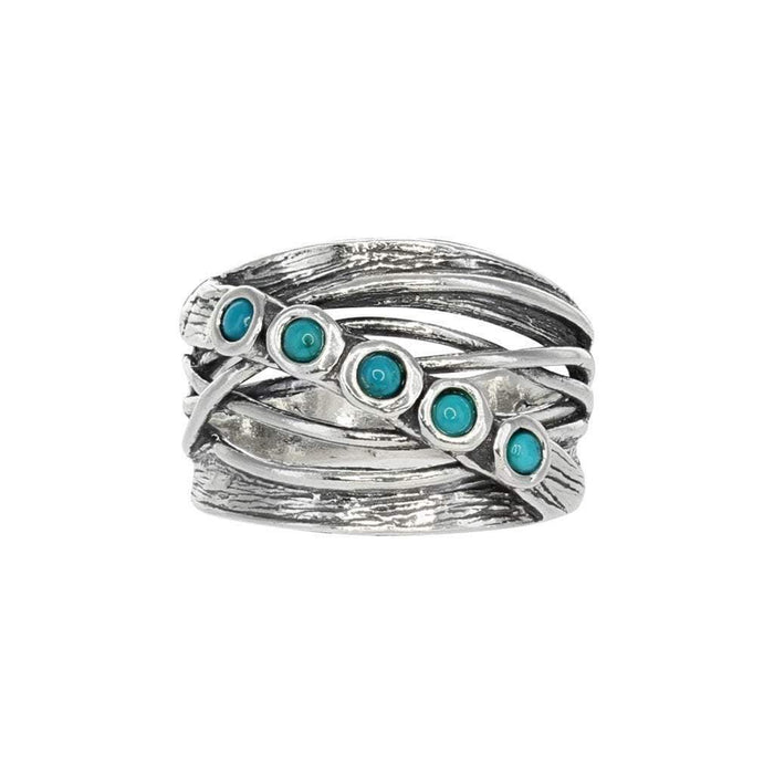 Meet your new favorite ring! Gorgeous sterling silver workmanship is finished by hand and topped with 5 small turquoise pieces that distinguish this special piece.